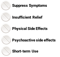They generally act as a “dimmer switch” when interacting with the pharmacological target. Symptoms are reduced but cannot always be eliminated within safe dosages or not at all.
