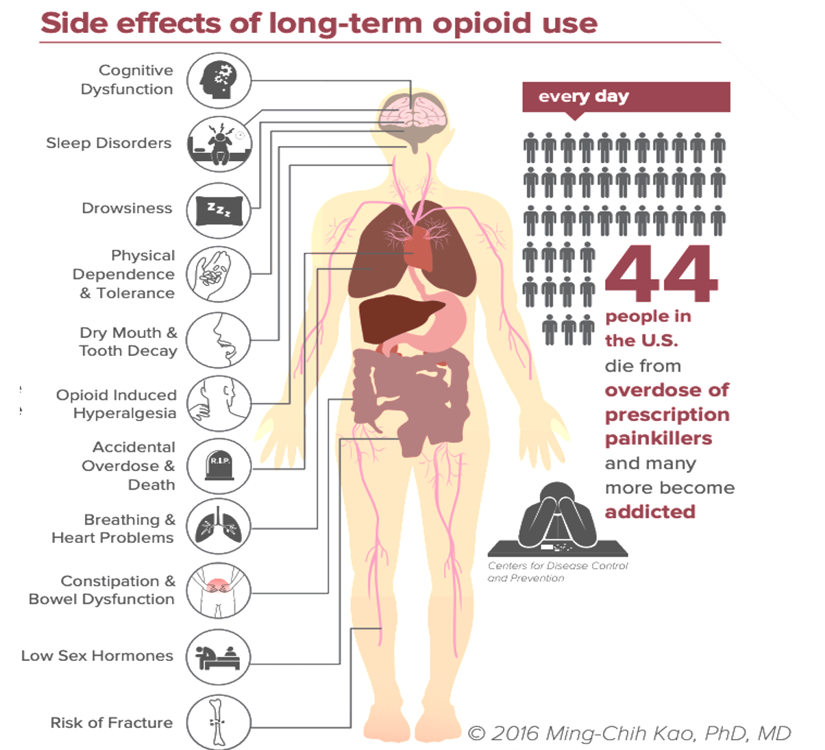 The severity and persistence of the disease combined with inadequate relief and side effects commonly drives patients to opioids.
